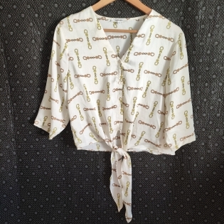 COD 0523 BLUSA EM SEDA COM BOTÕES E AMARRAÇÕES TAM M