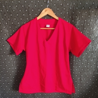 COD 0535 BLUSA OXIFORD VERMELHO INTEIRA COM ABERTURA NAS LATERAIS TAM P