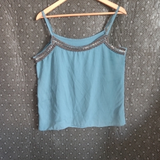 COD 0537 CAMISETA CREPE AZUL DETALHES EM PEDRARIAS TAM G