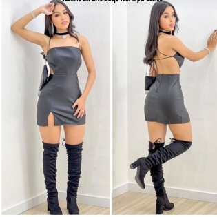 COD 5394 VESTIDO TUBINHO MALHA E PAETÊS COM BOJO AMARRAÇÕES NAS COSTAS VESTE 38 AO 42