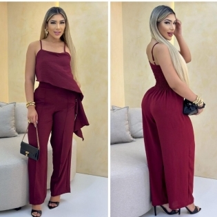 COD 5441 MACACÃO EM CREPE VINHO ELASTICO NAS COSTAS BOLSOS E ALÇAS REGULAVEIS TAM G