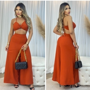 COD 5450 CONJUNTO CALÇA PANT TOP S/BOJO AMARRAÇÕES NAS COSTAS ZIPER NA CINTURA CREPE LARANJA TAM M