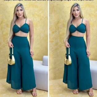 COD 5451 CONJUNTO CALÇA PANT TOP S/BOJO AMARRAÇÕES NAS COSTAS ZIPER NA CINTURA CREPE VERDE TAM M