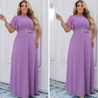 COD 5462 VESTIDO LONGO MALHA E TULE NA COR LILAS CINTO DO MESMO TECIDO VESTE 38 A0 42
