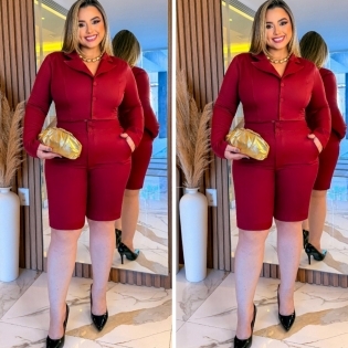 COD 5487 CONJUNTO CASACO E BERMUDA TECIDO ALFAIATARIA VINHO VESTE 46 E 48