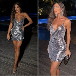 COD 5394 VESTIDO TUBINHO MALHA E PAETÊS COM BOJO AMARRAÇÕES NAS COSTAS VESTE 38 AO 42