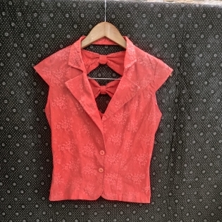 COD 0552 BLUSA COLETE EM TECIDO COM RENDA DETALHES NAS COSTAS TAM P