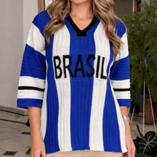COD 5530 BLUSÃO EM TRICO MODAL BRANCO AZUL PRETO LOGO BRASIL VESTE 38 AO 44