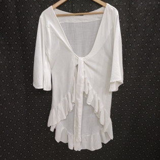 COD 0561 BLUSA MULLET EM VISCOLINHO BRANCO BOHO COM AMARRAÇÕES TAM M