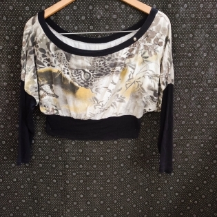 COD 0567 CROPED MANGAS LONGAS EM MALHA PRINT E PRETOS TAM M