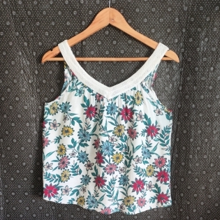 COD 0580 BLUSA SOLTINHA EM VISCOSE FLORAL DETALHE NA ALÇA TAM M