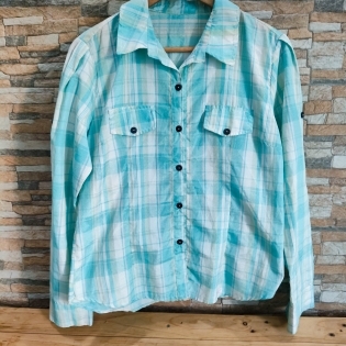 COD 0605 CAMIOSA SOCIAL QUADRICULADA EM POLIESTER BOLSO FALSO NA FRENTE TAM P