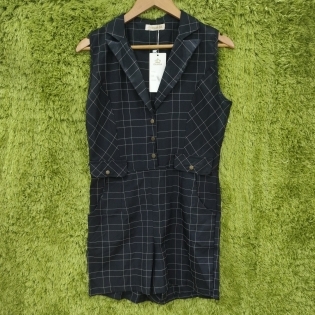 COD 0640 MACAQUINHO CREPE QUADRICULADO COM BOLSOS E ABERTURA COM BOTÕES NA FRENTE TAM M