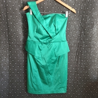 COD 0680 VESTIDO OMBRO UNICO EM ALFAIATARIA ACETINADA ZIPER NAS COSTAS TAM M