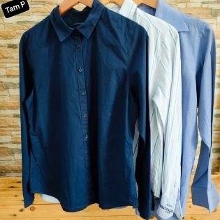 COD 0692 CAMISA SOCIAL MASCULINA TAM P EM ALGODÃO NAS CORES AZUL MARINHO LISTRADA AZUL