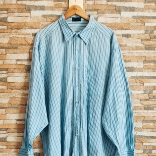 COD 0719 CAMISA SOCIAL ALGODÃO AZUL COM LISTRAS TAM 08