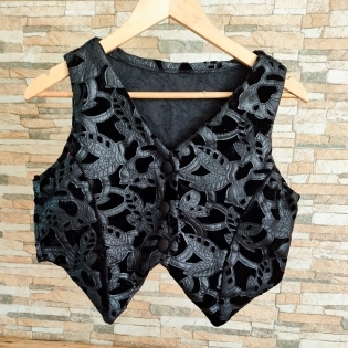 COD 0753 JAQUETA EM VELUDO E COURO ECOLOGICO PRETO VESTE M e P
