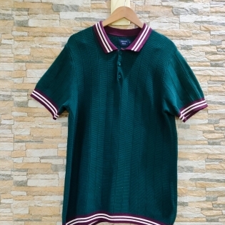 COD 0759 CAMISA EM LINHA NA COR VERDE ESCURO COM DETALHES BRANCOS E VINHO TAM G
